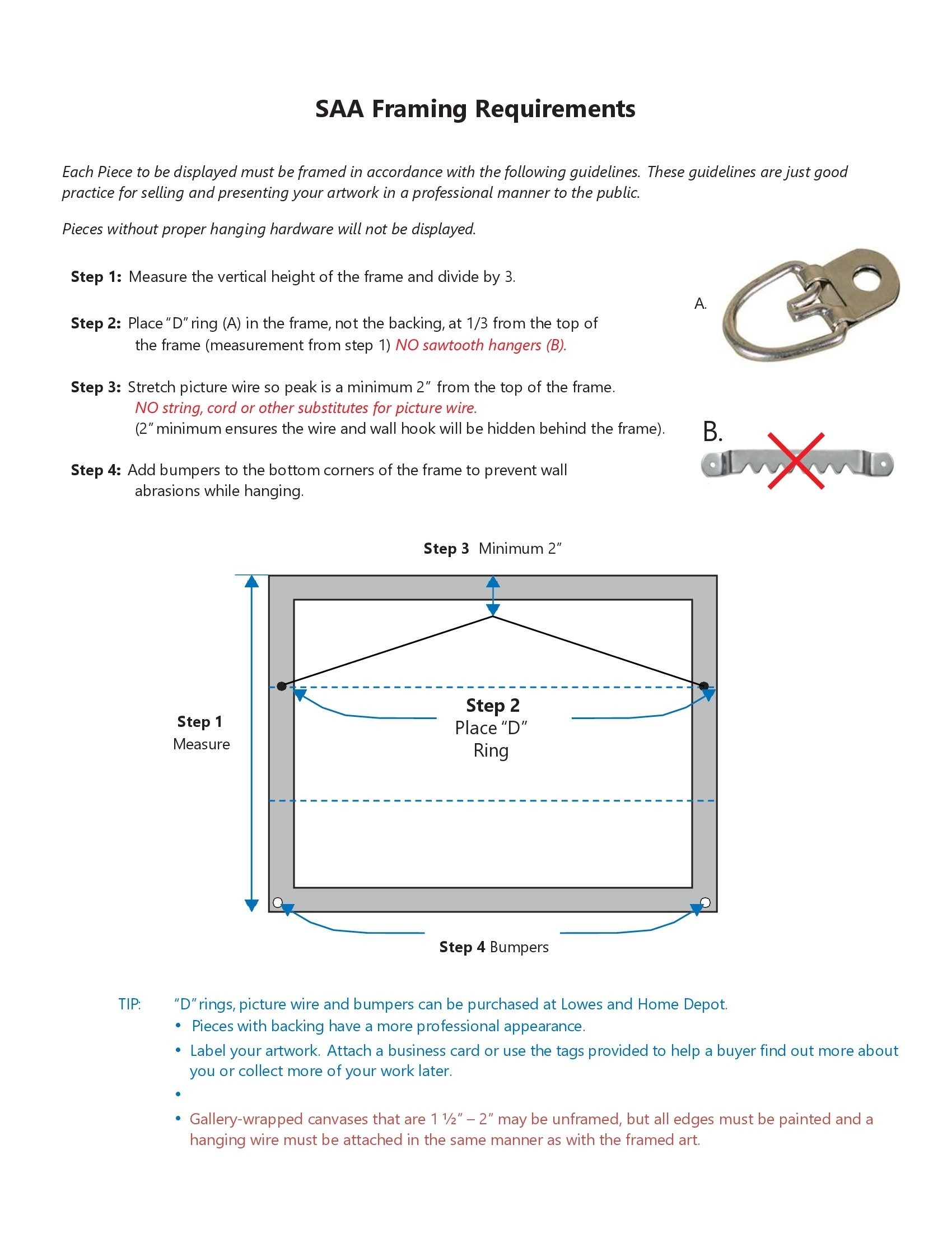 Framing (hanging) Instructions for CAC Exhibits CLICK→ Framing
